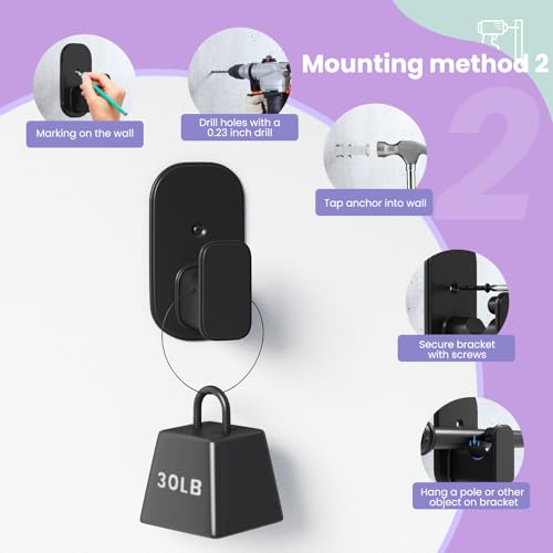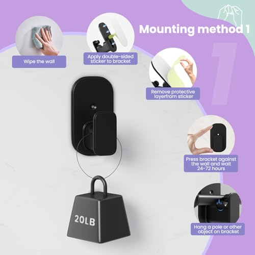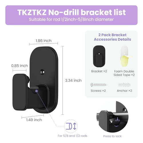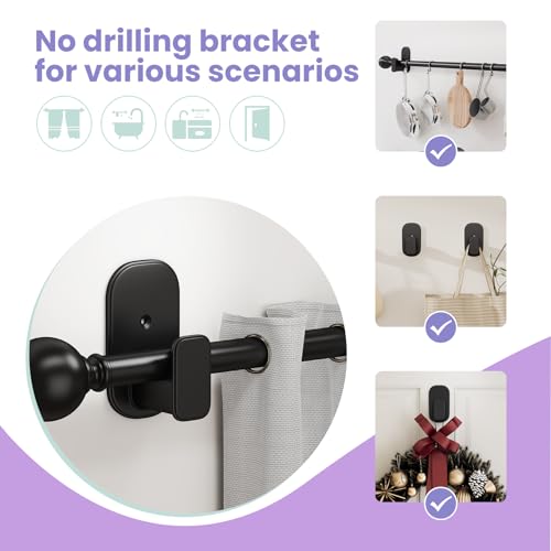 Self Adhesive No Drill Curtain Rod Holders Black 2Pack Self Adhesive No Screw Curtain Rod Brackets Heavy Duty No Damage